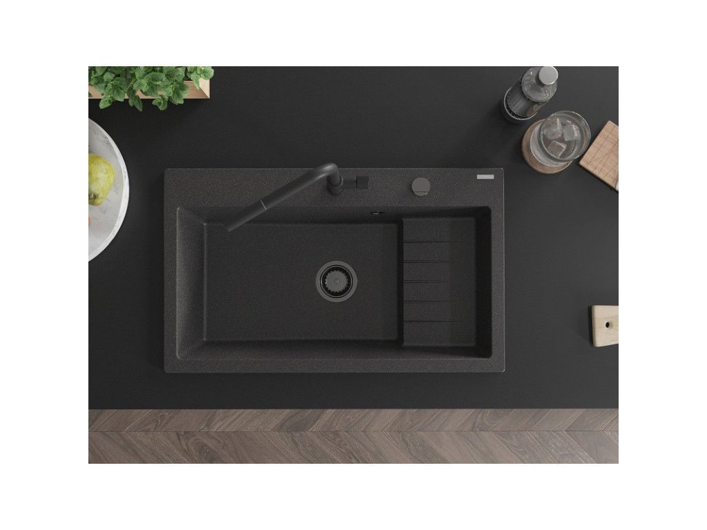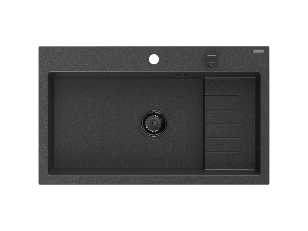 Granitový drez Mexen Omar s 1 misou 800 x 480 mm, čierny bodkovaný, čierny sifón - 6520801005-76-B