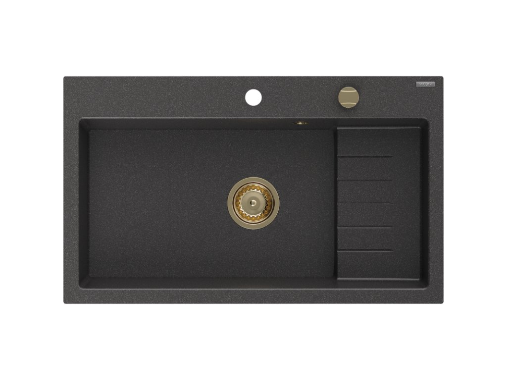 Granitový drez Mexen Omar s 1 misou 800 x 480 mm, čierny bodkovaný, zlatý sifón - 6520801005-76-G