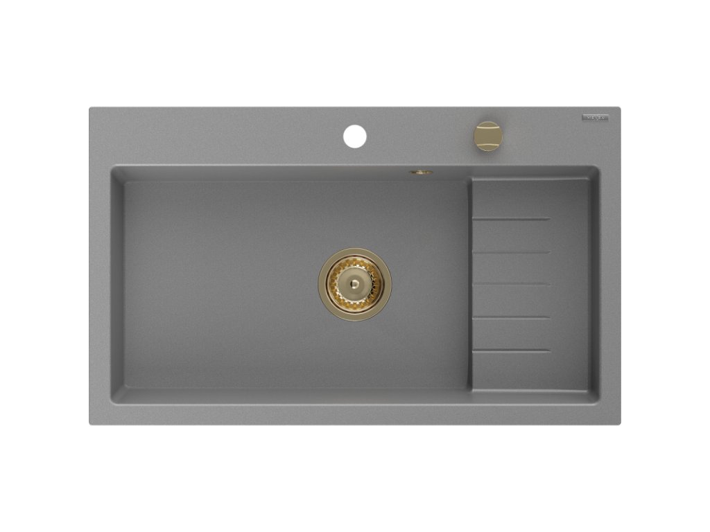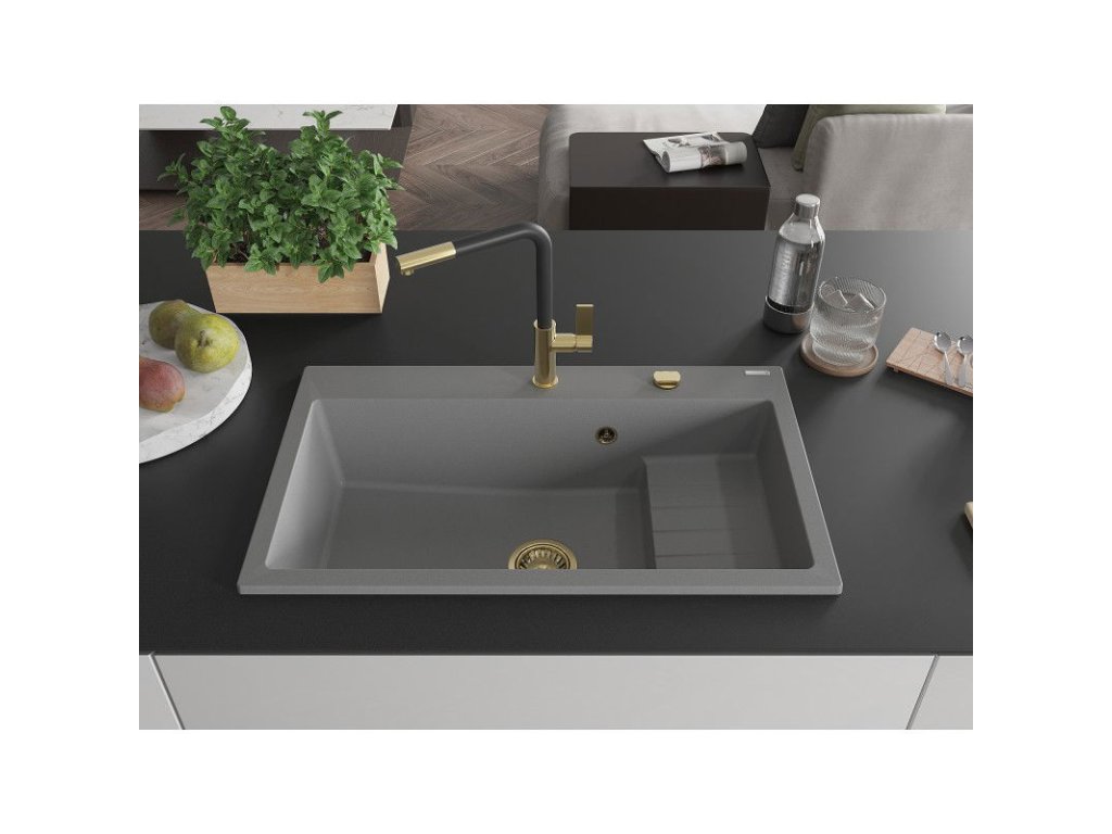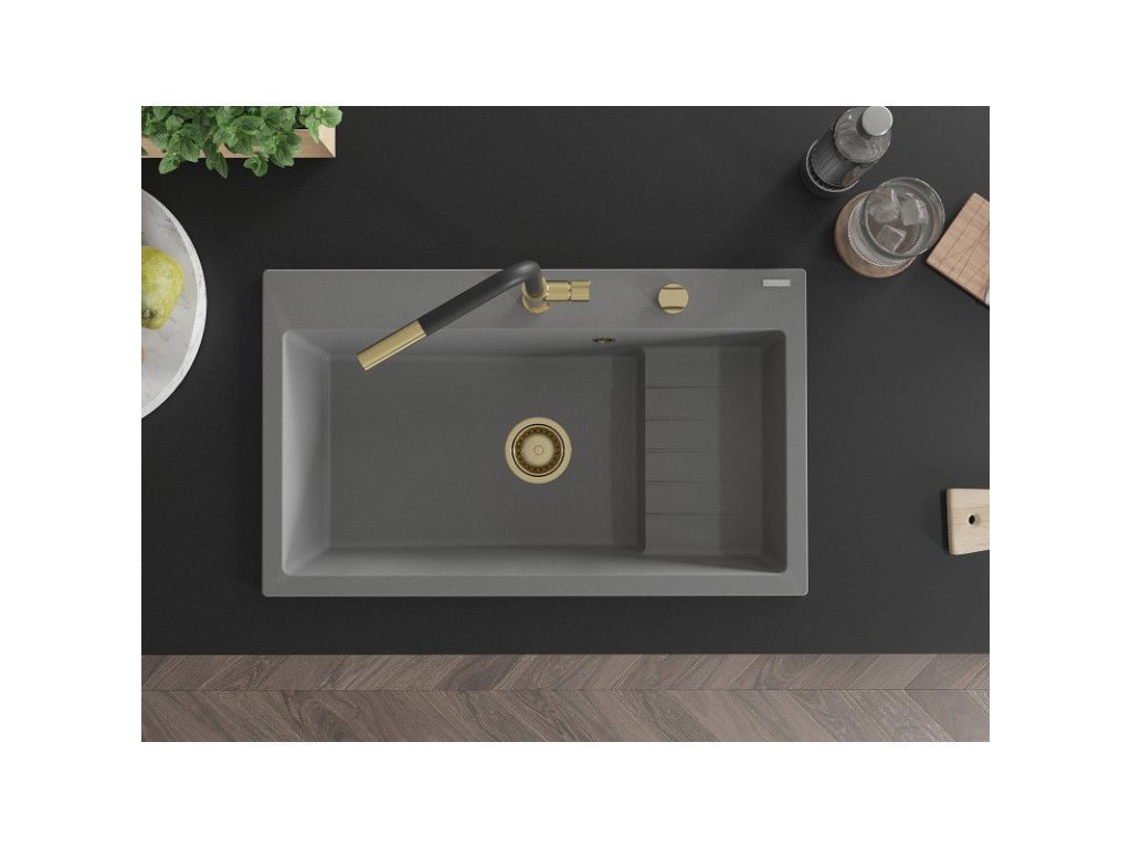 Granitový drez Mexen Omar s 1 misou 800 x 480 mm, sivý, zlatý sifón - 6520801005-71-G