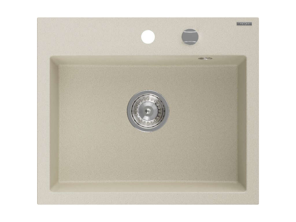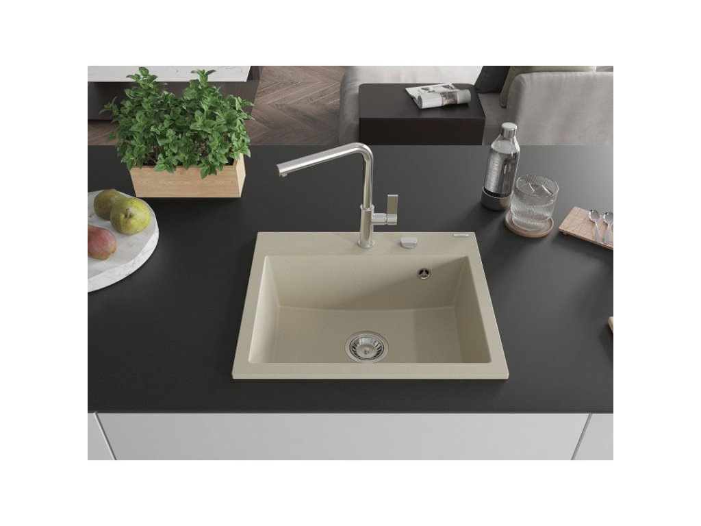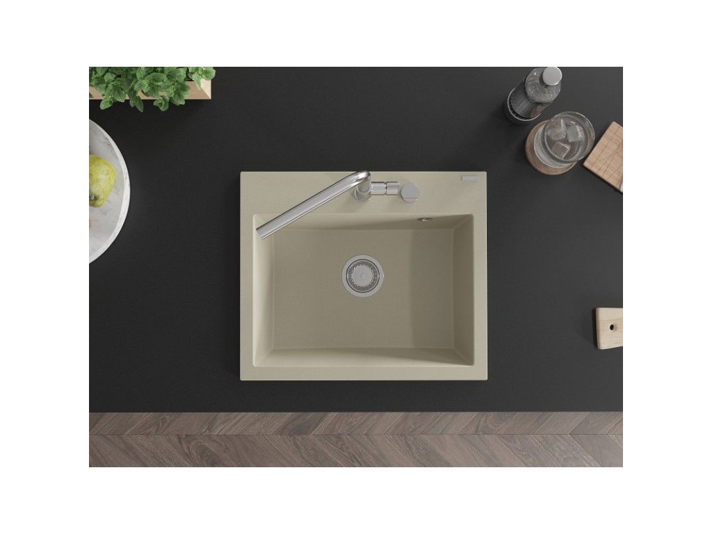 Granitový drez Mexen Oscar s 1 misou 580 x 490 mm, béžový, chrómový sifón - 6519581000-69