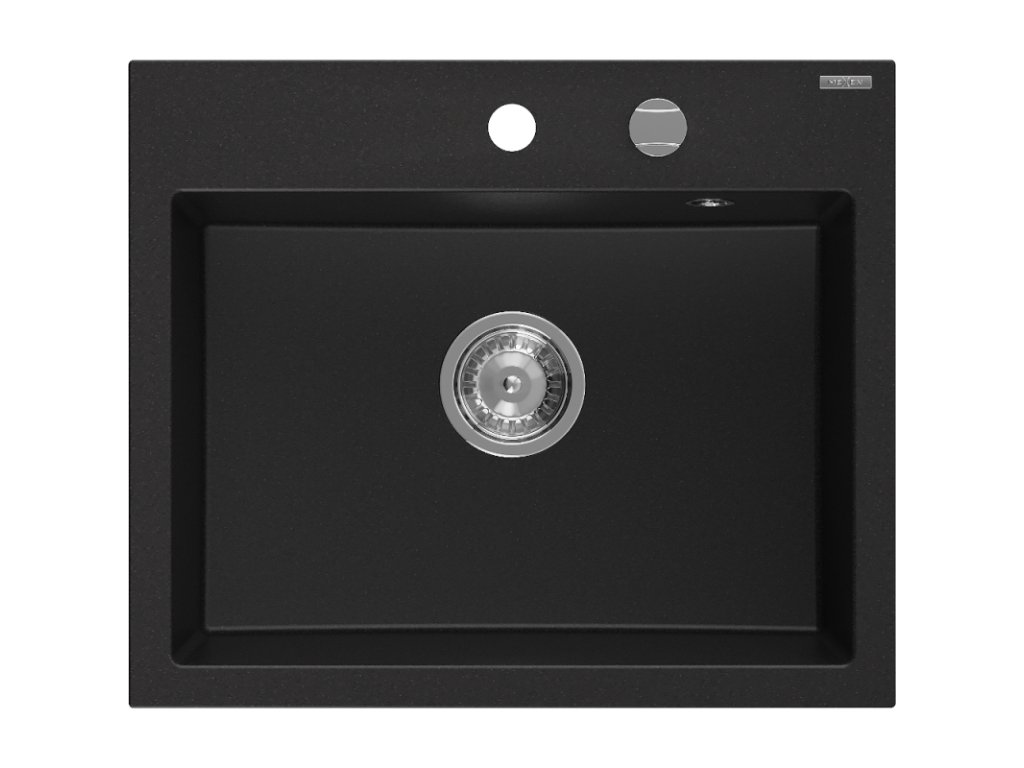Granitový drez Mexen Oscar s 1 misou 580 x 490 mm, čierny, chrómový sifón - 6519581000-77