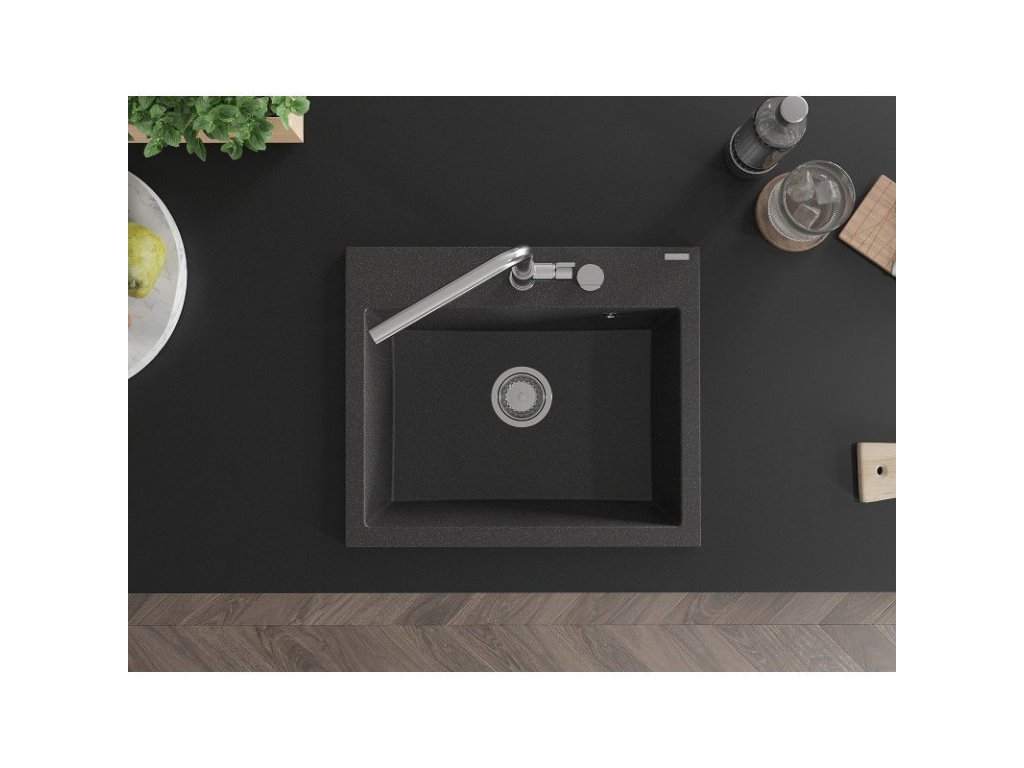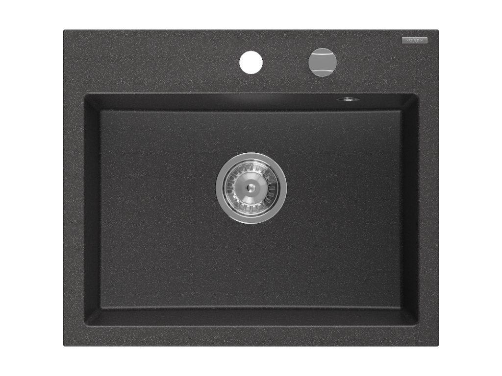 Granitový drez Mexen Oscar s 1 misou 580 x 490 mm, čierny bodkovaný, chrómový sifón - 6519581000-76