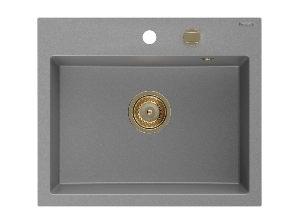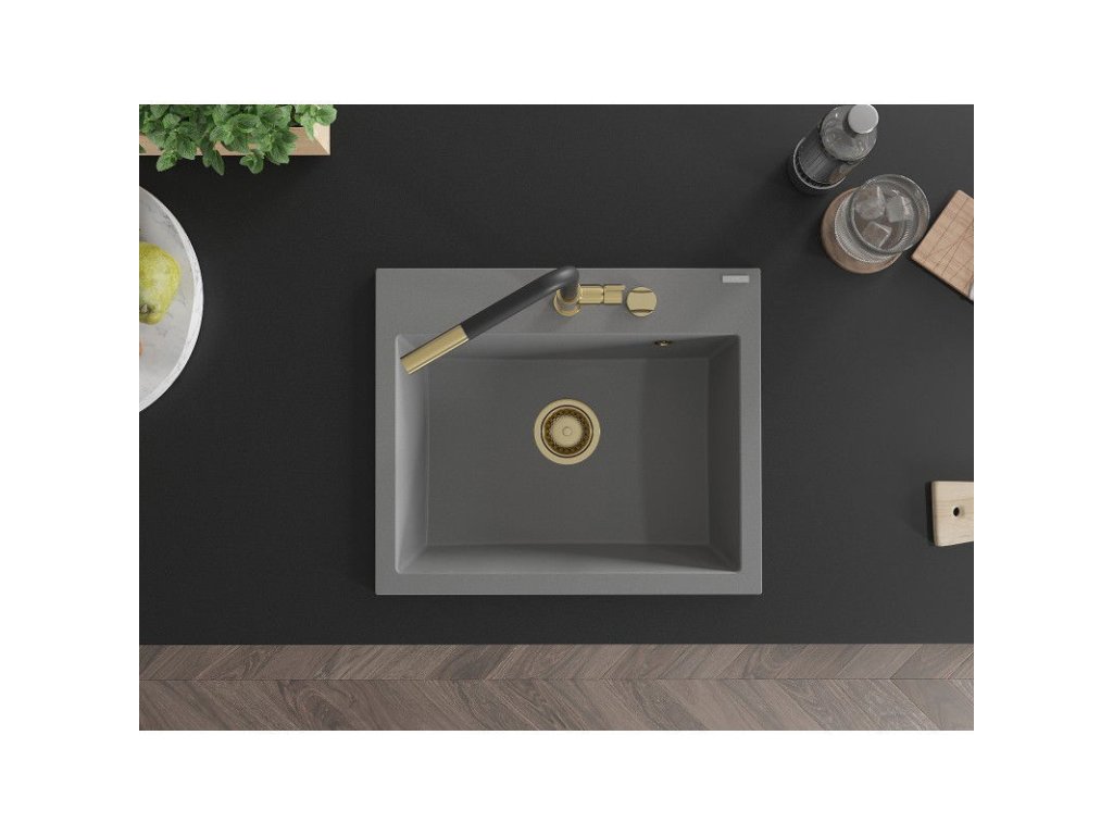 Granitový drez Mexen Oscar s 1 misou 580 x 490 mm, sivý, zlatý sifón - 6519581000-71-G