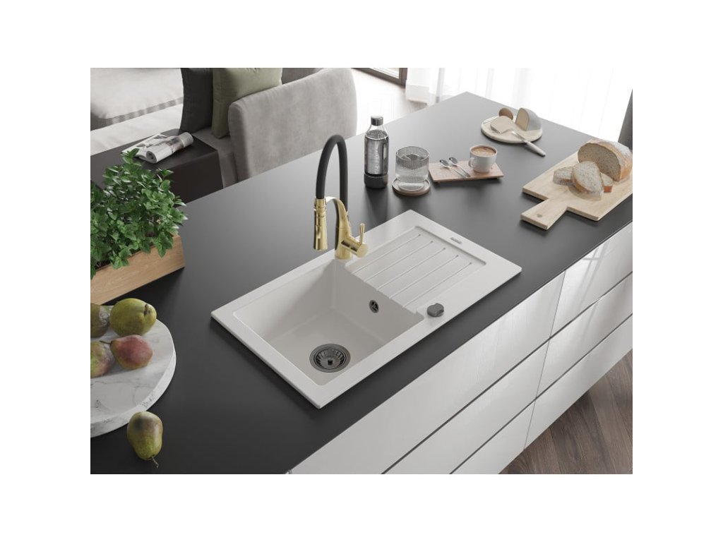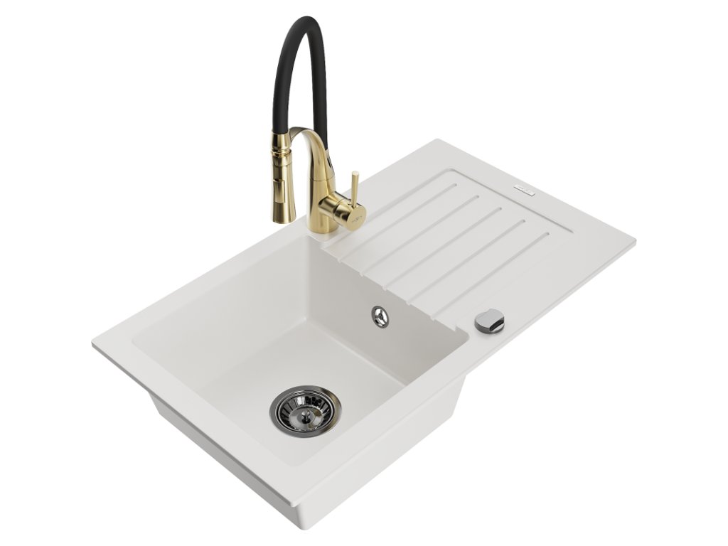 Granitový drez Mexen Pablo s 1 misou, odkapávačom a batériou Aster, biely - 6510-20-73450-57-B