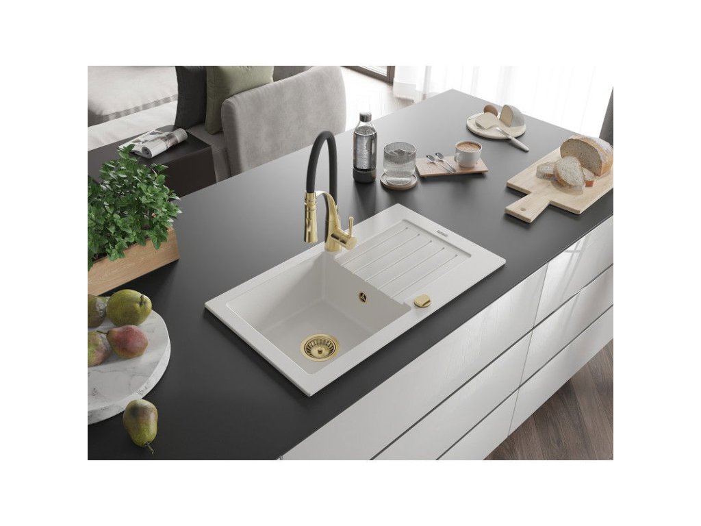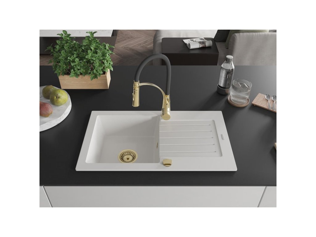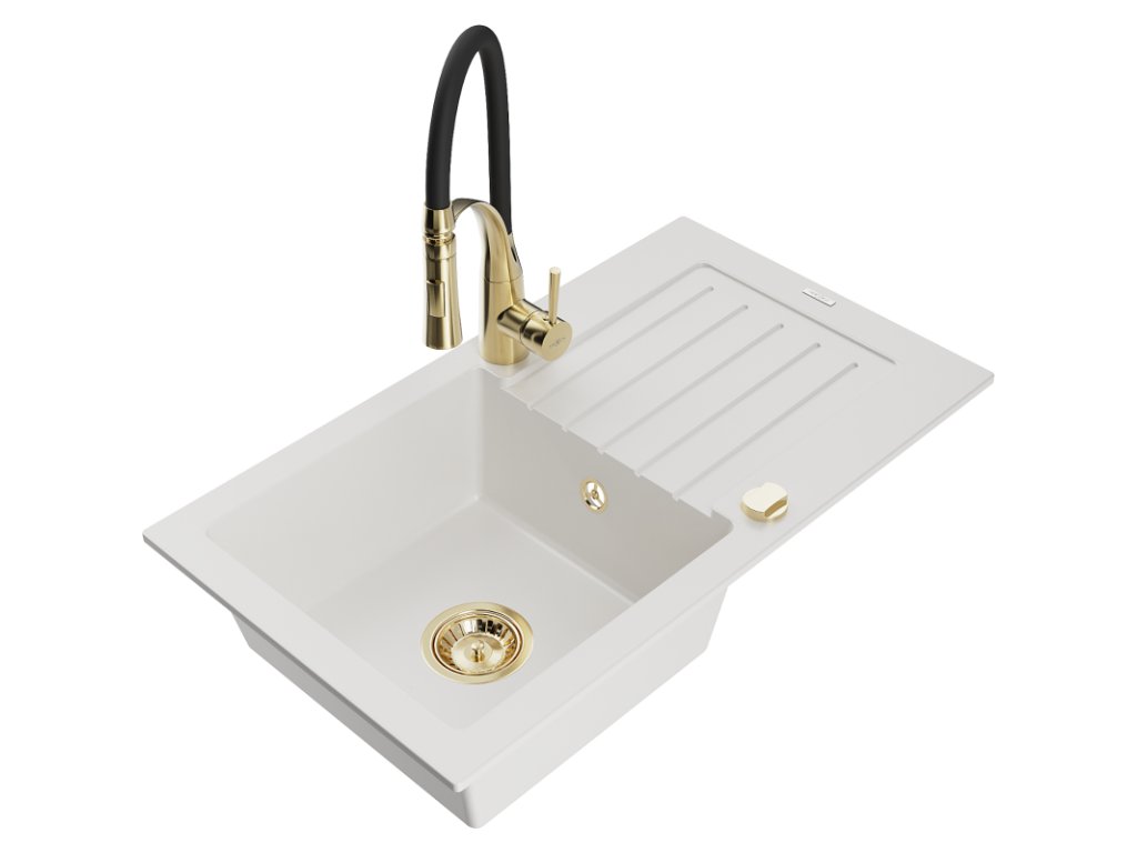Granitový drez Mexen Pablo s 1 misou, odkapávačom a batériou Aster, biely - 6510-20-73450-57-G
