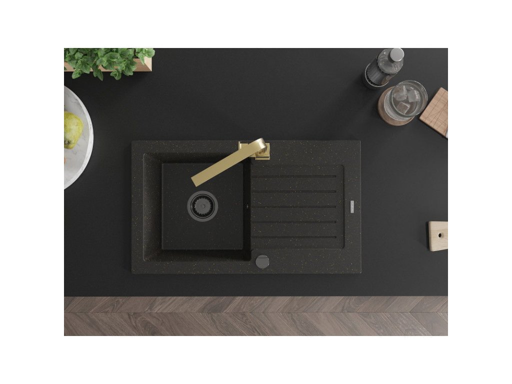 Granitový drez Mexen Pablo s 1 misou, odkapávačom a batériou Rita, čierna/zlatá metalíza - 6510-75-670300-50-B