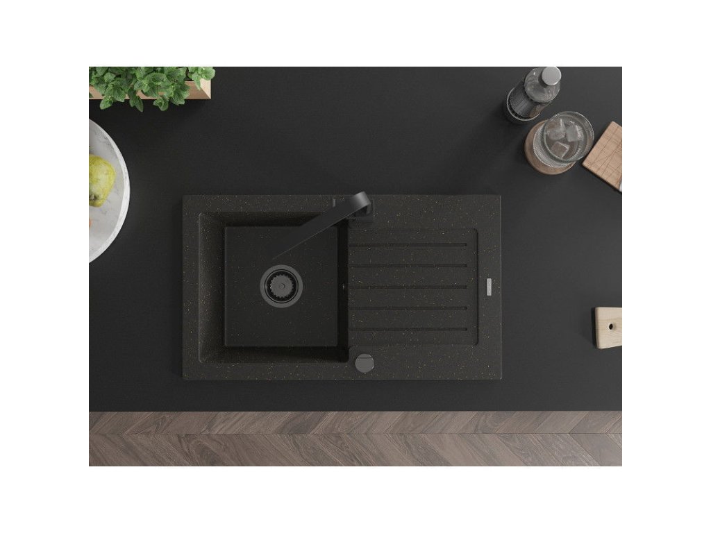 Granitový drez Mexen Pablo s 1 misou, odkapávačom a batériou Rita, čierna/zlatá metalíza - 6510-75-670300-70-B