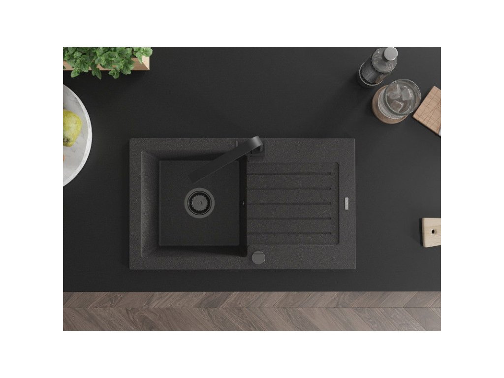 Granitový drez Mexen Pablo s 1 misou, odkapávačom a batériou Rita, čierny bodkovaný - 6510-76-670300-70-B