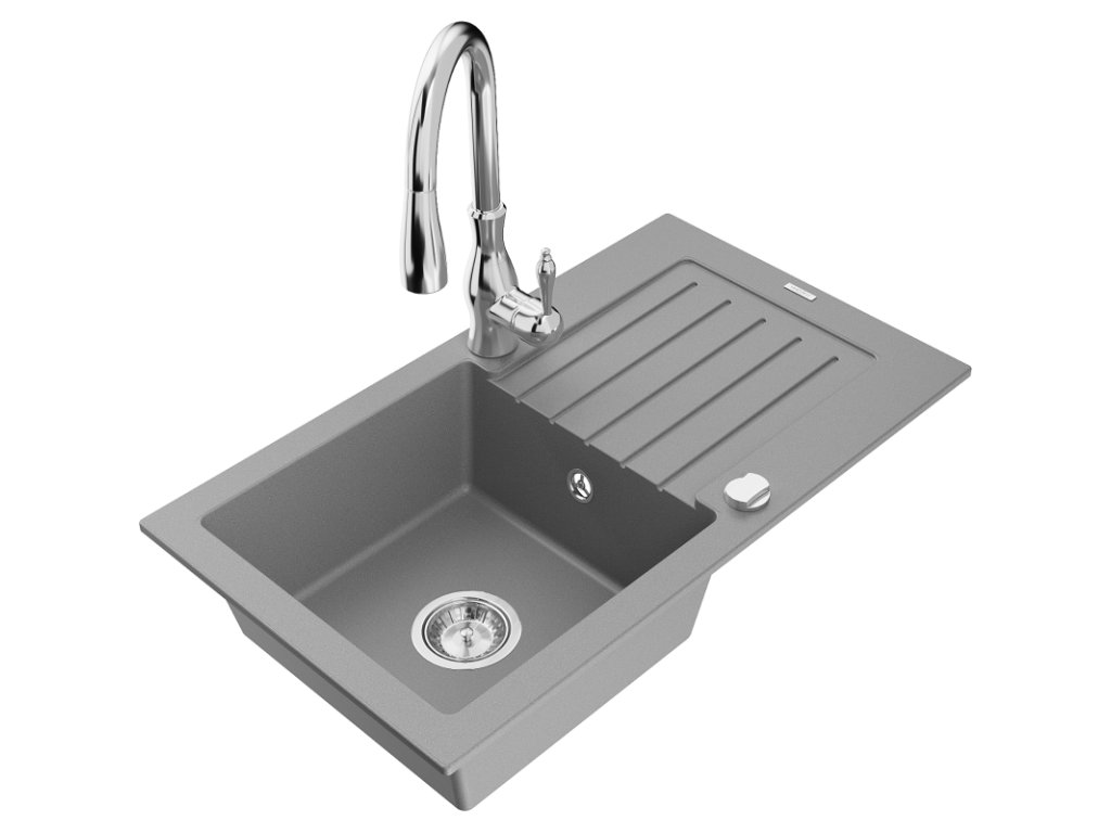 Granitový drez Mexen Pablo s 1 misou, odkapávačom a batériou Savita, sivý - 6510-71-672601-00