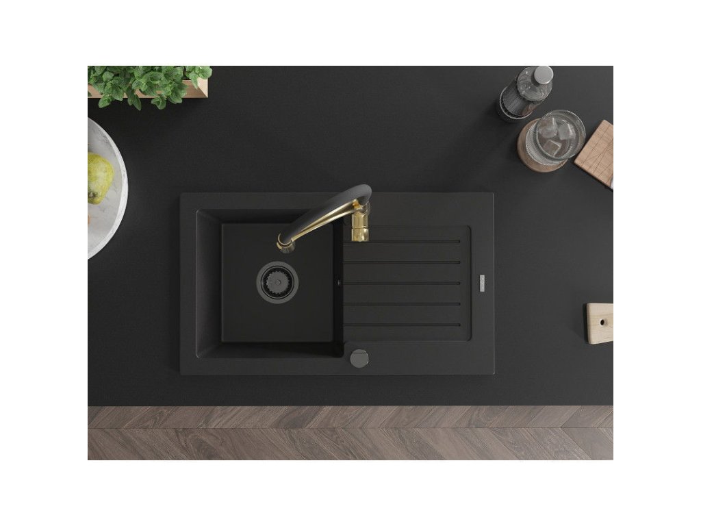 Granitový drez Mexen Pablo s 1 misou, odkapávačom a kuchynskou batériou Aster, čierny - 6510-77-73450-57-B