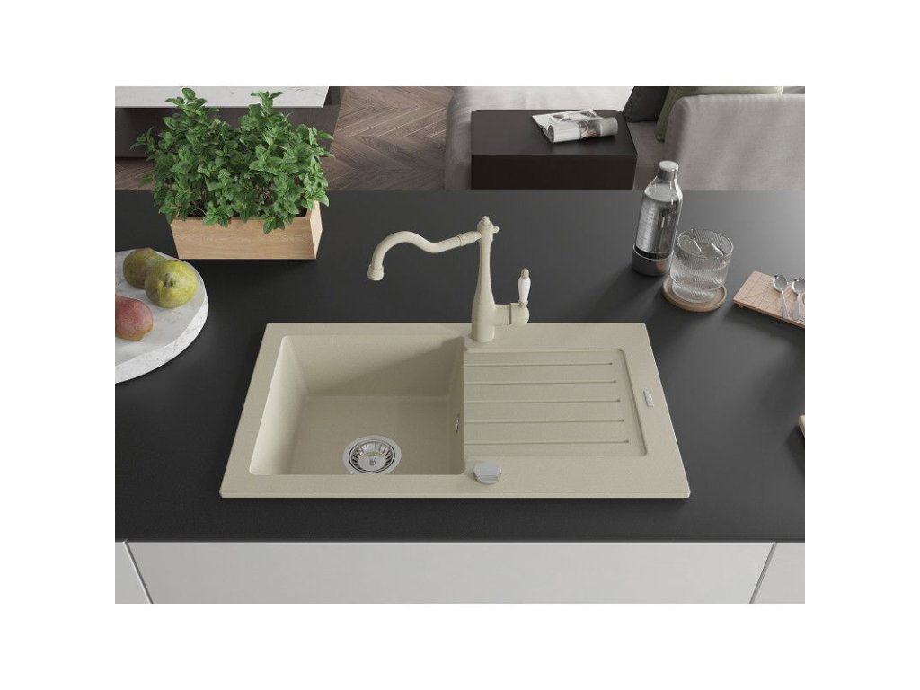 Granitový drez Mexen Pablo s 1 misou, odkapávačom a kuchynskou batériou Carla, béžový - 6510-69-670700-69