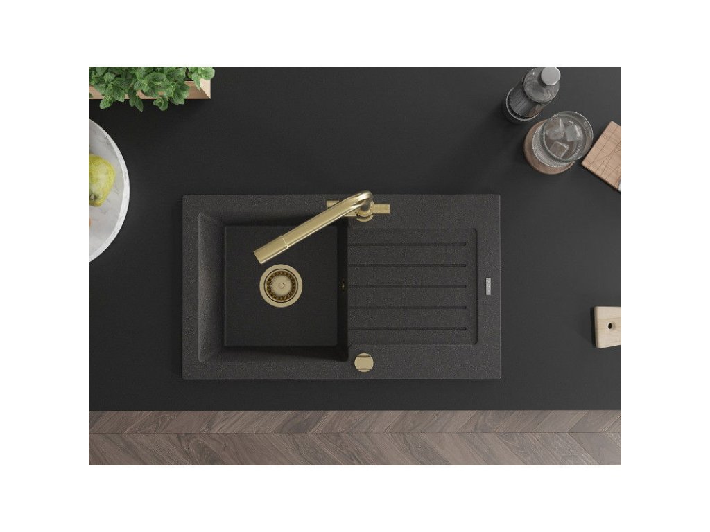 Granitový drez Mexen Pablo s 1 misou, odkapávačom a kuchynskou batériou Duero, čierna škvrnitá - 6510-76-671600-50