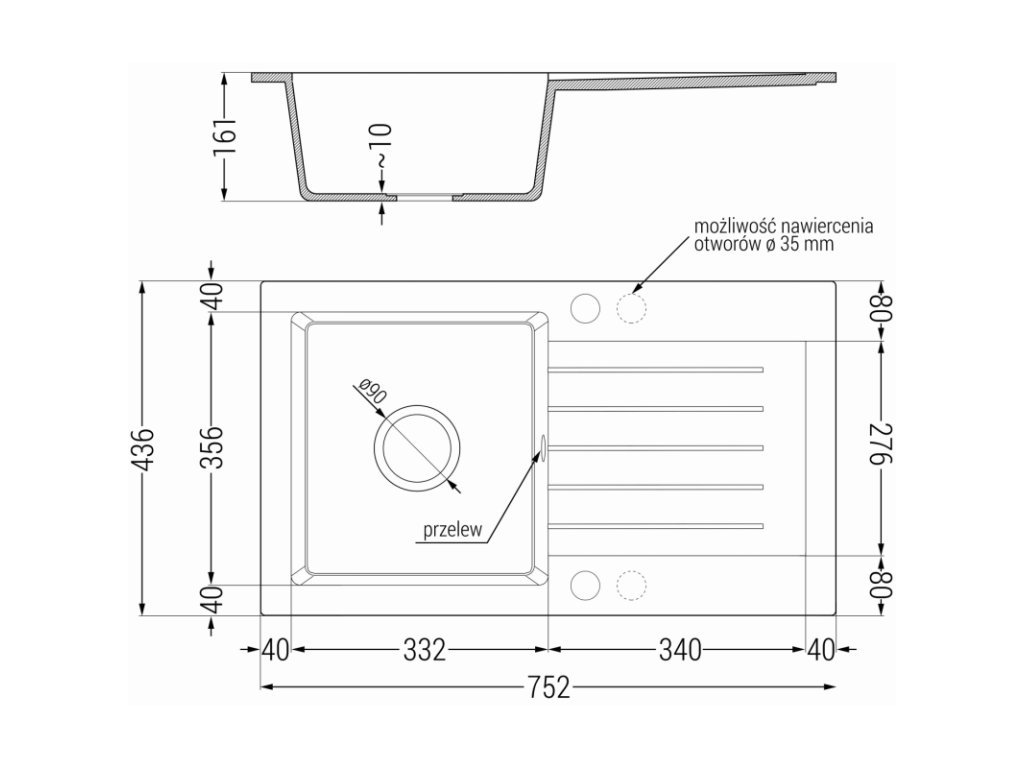 Dva ďalšie otvory pod výliskom ø35 na vlastné dierovanie