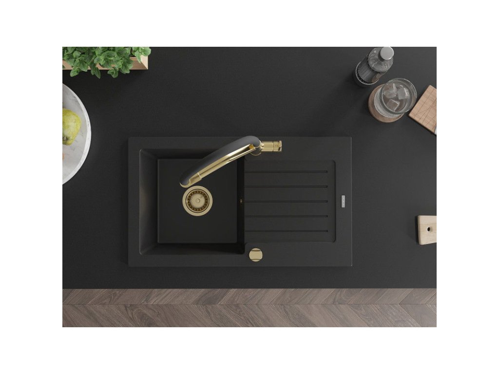 Granitový drez Mexen Pablo s 1 misou, odkapávačom a kuchynskou batériou Duo, čierny - 6510-77-671701-57-G