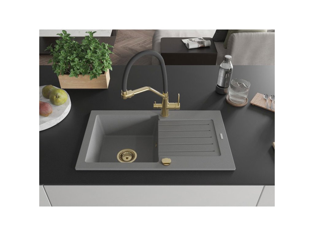 Granitový drez Mexen Pablo s 1 misou, odkapávačom a kuchynskou batériou Duo, sivý - 6510-71-671701-57-G