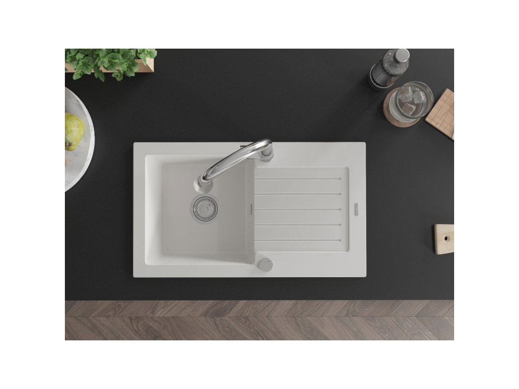 Granitový drez Mexen Pablo s 1 misou, odkapávačom a kuchynskou batériou Elia, biely - 6510-20-670101-00