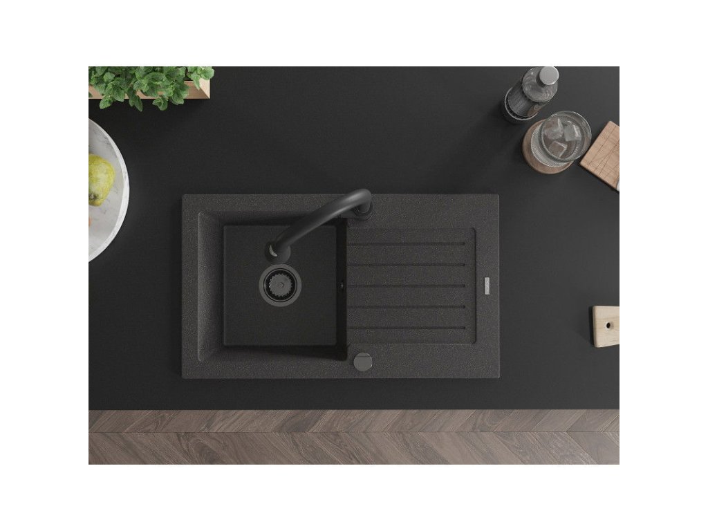 Granitový drez Mexen Pablo s 1 misou, odkapávačom a kuchynskou batériou Elia, čierny bodkovaný - 6510-76-670101-70-B