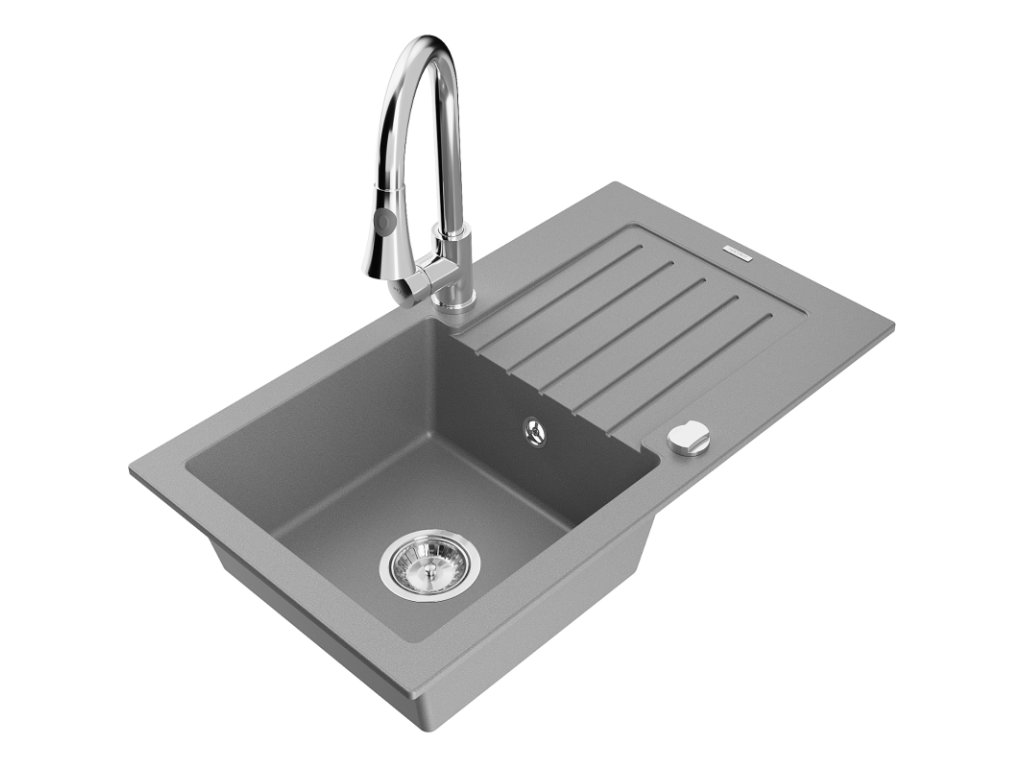 Granitový drez Mexen Pablo s 1 misou, odkapávačom a kuchynskou batériou Elia, sivý - 6510-71-670101-00