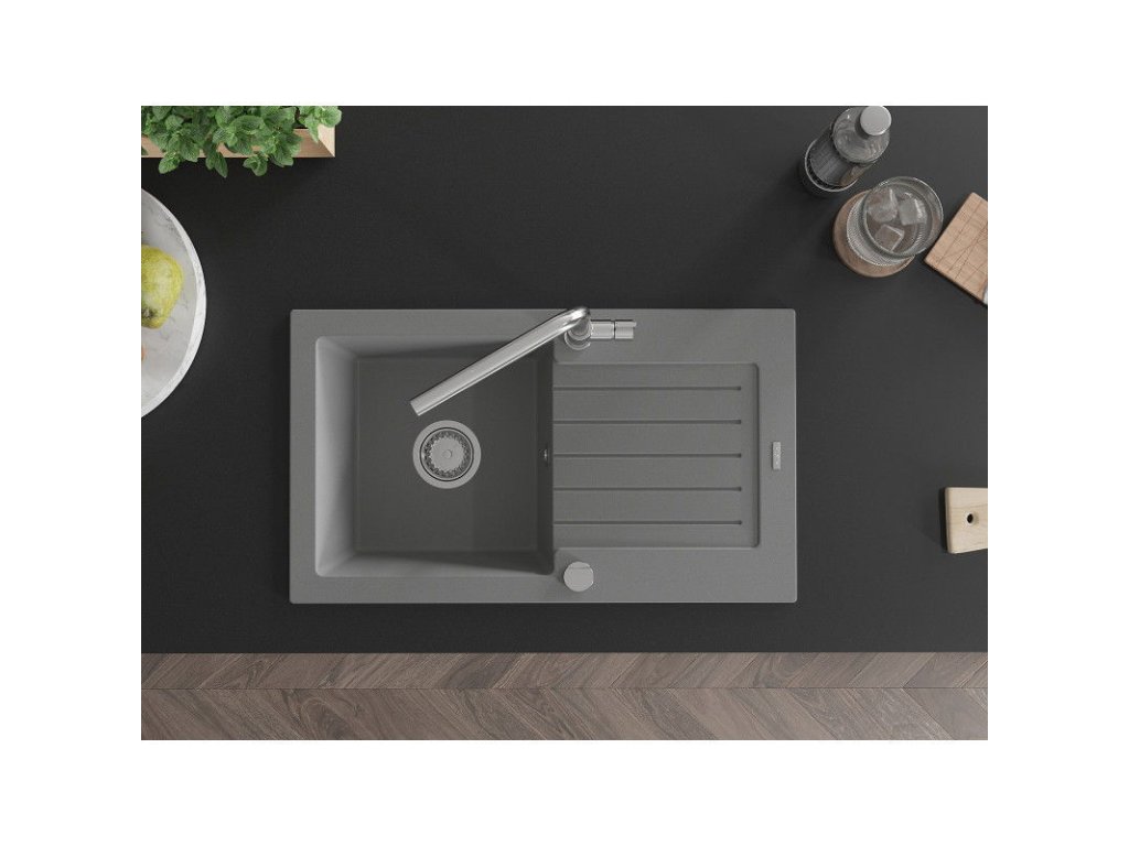 Granitový drez Mexen Pablo s 1 misou, odkapávačom a kuchynskou batériou Flora, sivý - 6510-71-670401-00