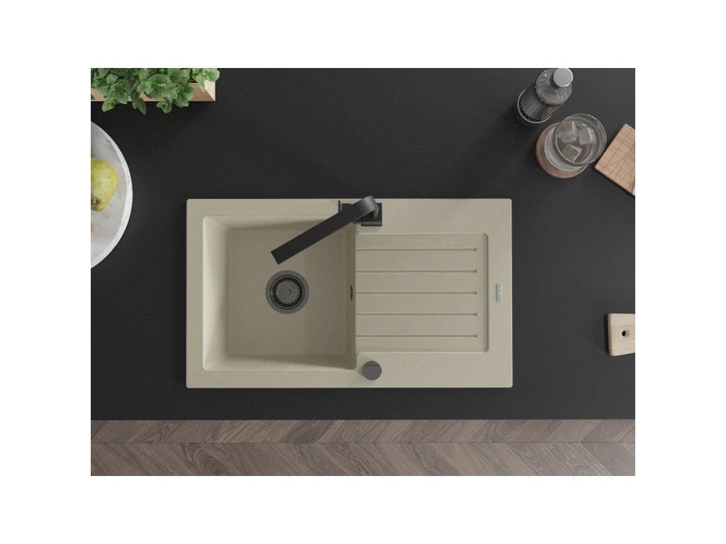 Granitový drez Mexen Pablo s 1 misou, odkapávačom a kuchynskou batériou Rita, béžový - 6510-69-670300-70