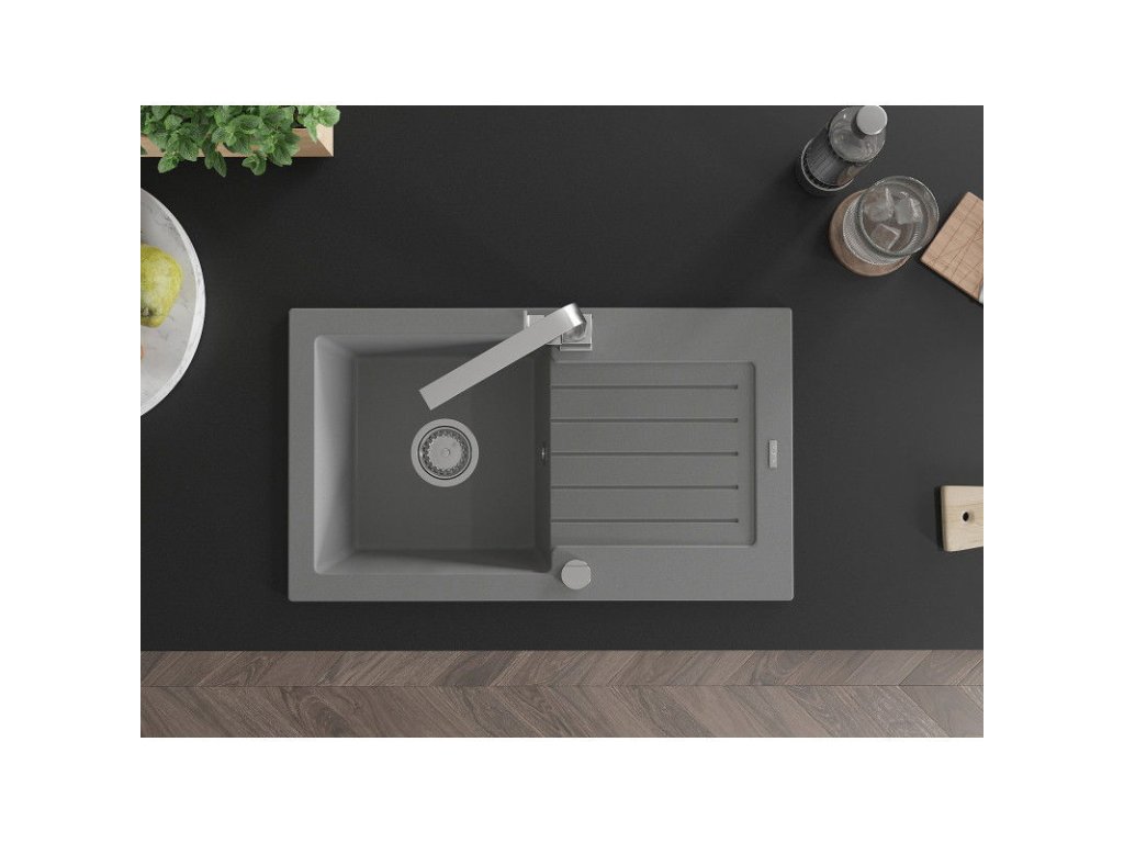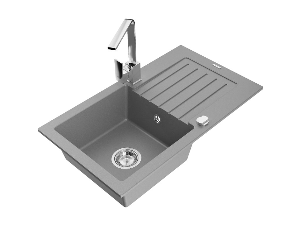 Granitový drez Mexen Pablo s 1 misou, odkapávačom a kuchynskou batériou Rita, sivý - 6510-71-670300-00