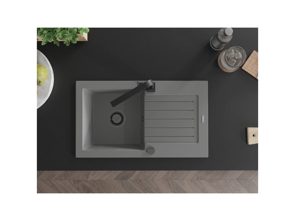 Granitový drez Mexen Pablo s 1 misou, odkapávačom a kuchynskou batériou Rita, sivý - 6510-71-670300-70-B