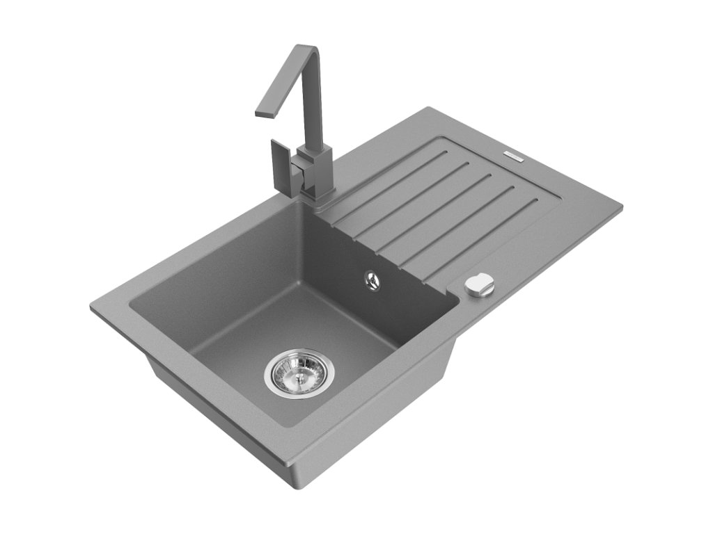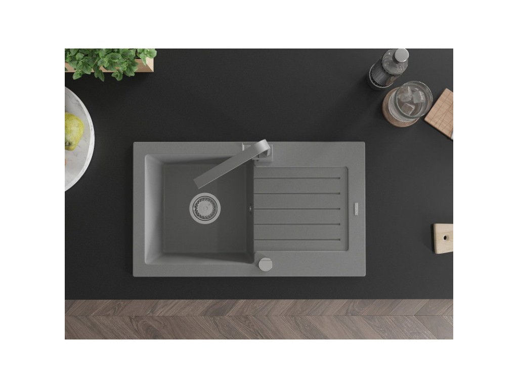 Granitový drez Mexen Pablo s 1 misou, odkapávačom a kuchynskou batériou Rita, sivý - 6510-71-670300-71