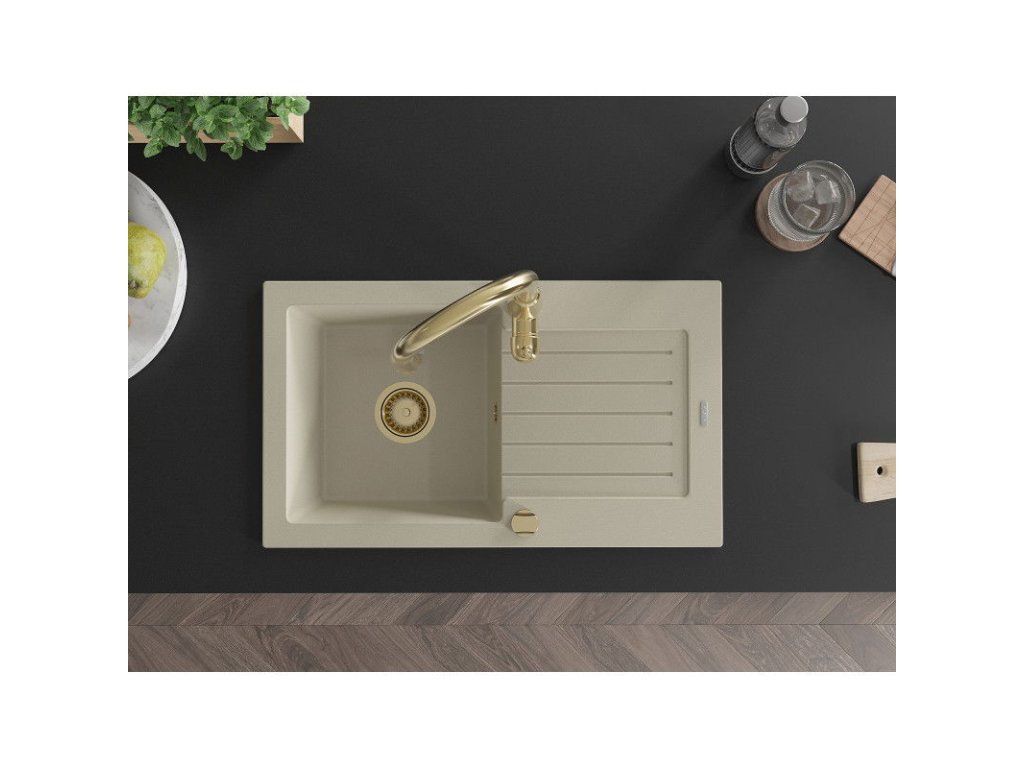 Granitový drez Mexen Pablo s 1 misou, odkapávačom a kuchynskou batériou Savita, béžový - 6510-69-672601-50
