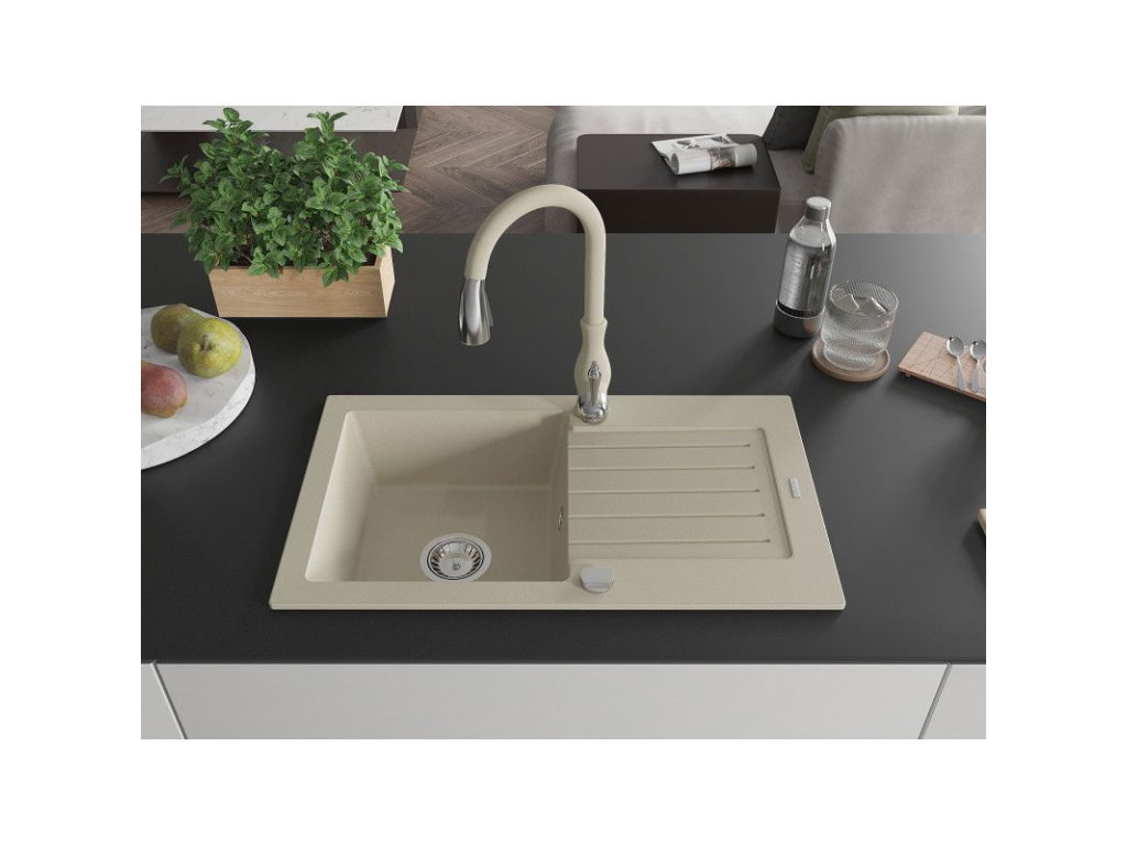 Granitový drez Mexen Pablo s 1 misou, odkapávačom a kuchynskou batériou Savita, béžový - 6510-69-672601-69