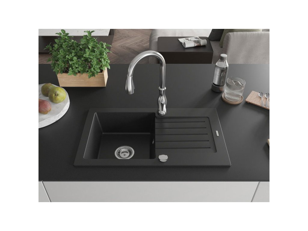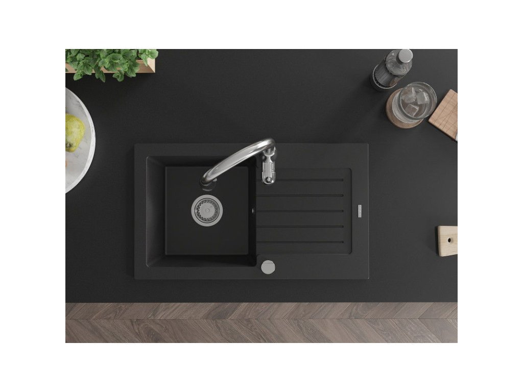 Granitový drez Mexen Pablo s 1 misou, odkapávačom a kuchynskou batériou Savita, čierny - 6510-77-672601-00