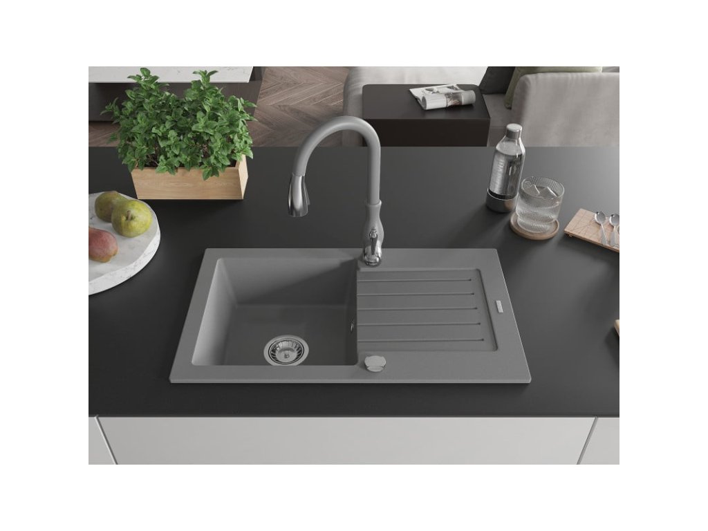 Granitový drez Mexen Pablo s 1 misou, odkapávačom a kuchynskou batériou Savita, sivý - 6510-71-672601-71