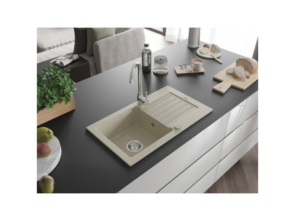 Granitový drez Mexen Pablo s 1 misou, odkapávačom a kuchynskou batériou Telma, béžový - 6510-69-670200-00