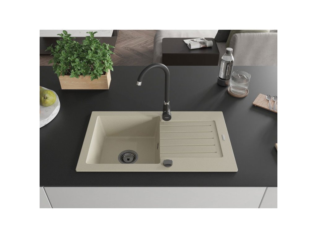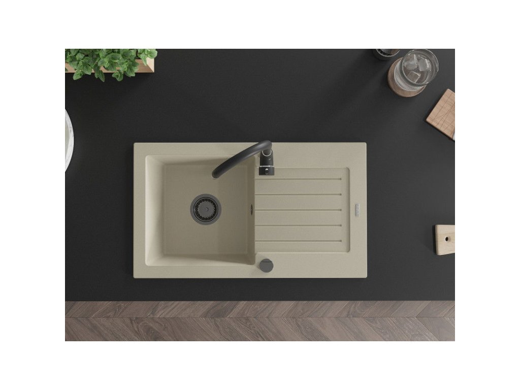 Granitový drez Mexen Pablo s 1 misou, odkapávačom a kuchynskou batériou Telma, béžový - 6510-69-670200-70