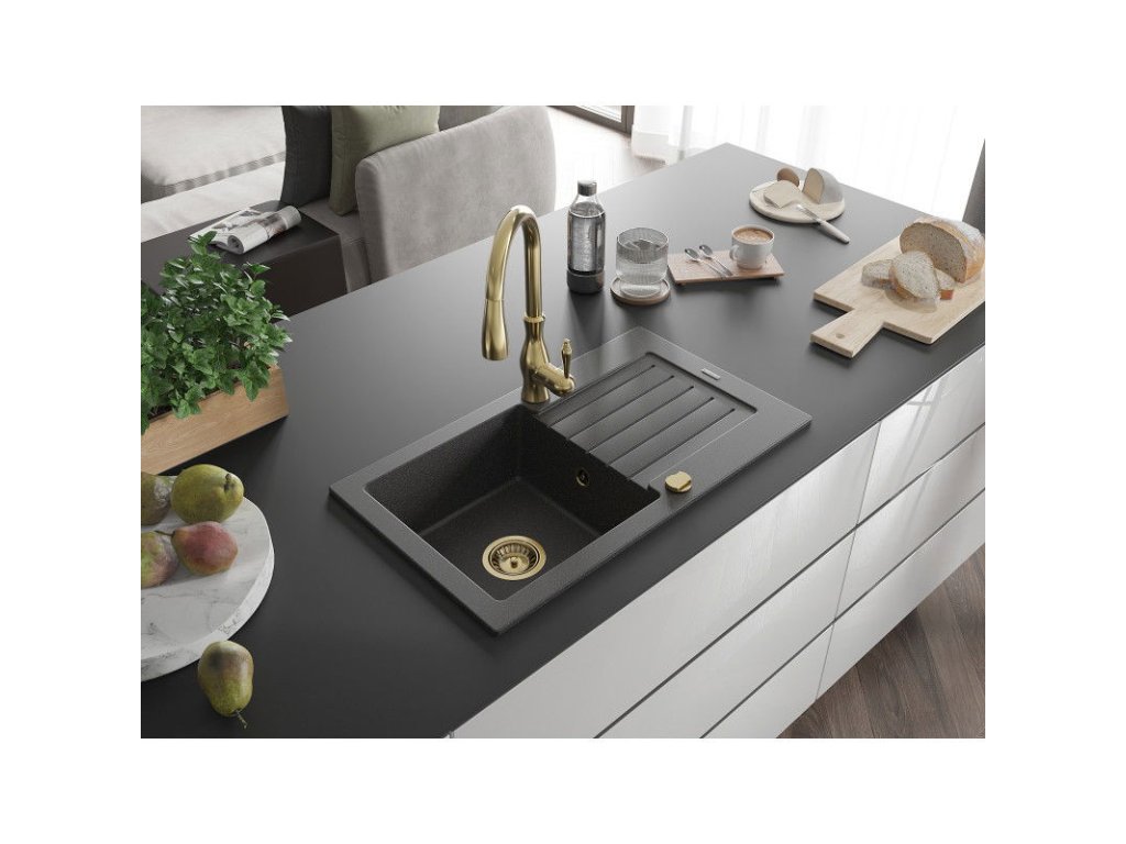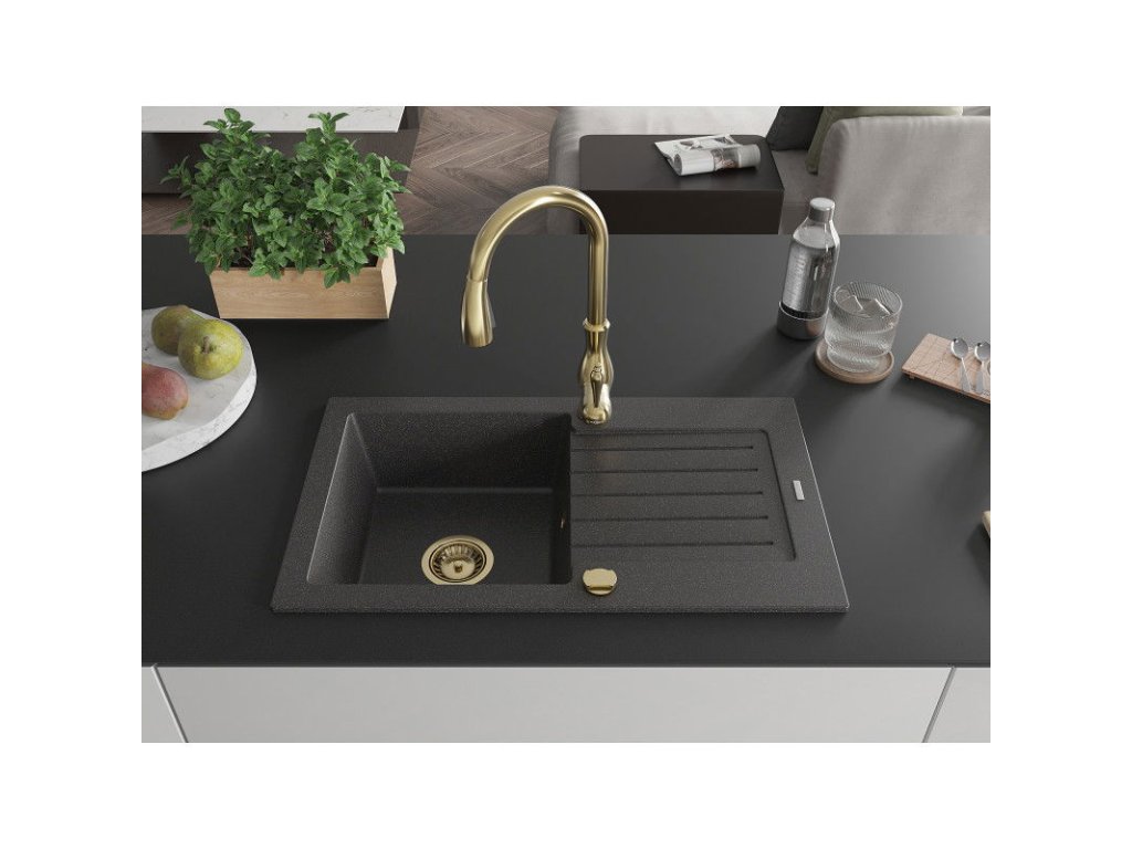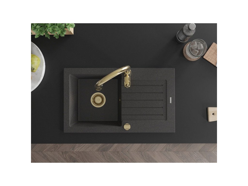 Granitový drez Mexen Pablo s 1 misou, odkvapkávačom a batériou Savita, čierna škvrnitá - 6510-76-672601-50