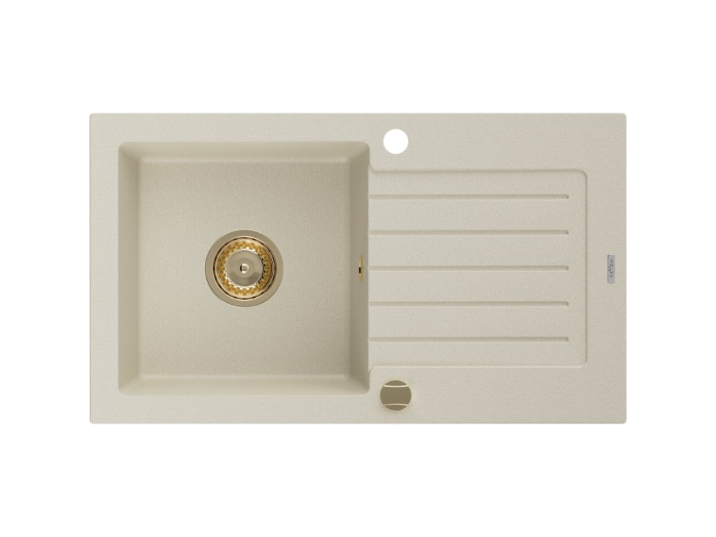 Granitový drez Mexen Pablo s 1 misou a odkapávačom 752 x 436 mm, béžový, zlatý sifón - 6510751010-69-G