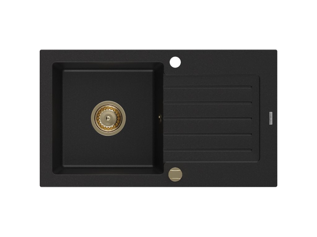 Granitový drez Mexen Pablo s 1 misou a odkapávačom 752 x 436 mm, čierny, zlatý sifón - 6510751010-77-G