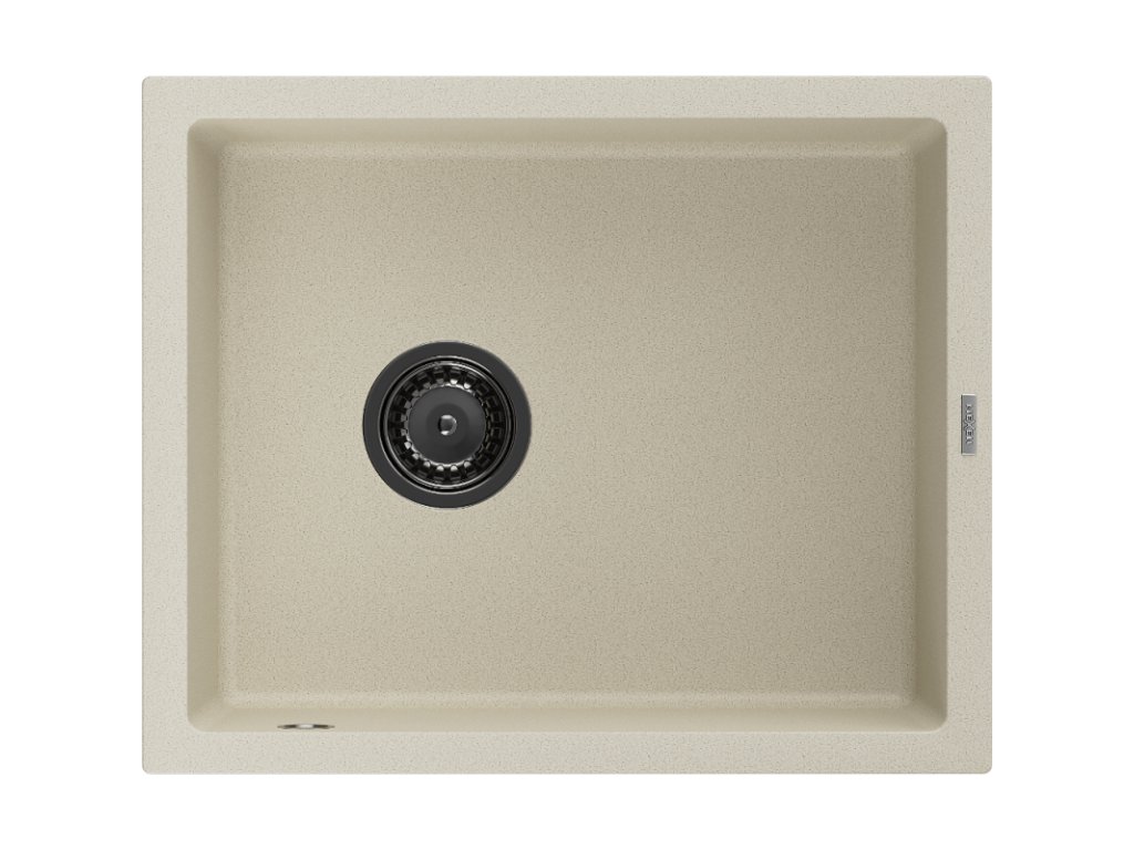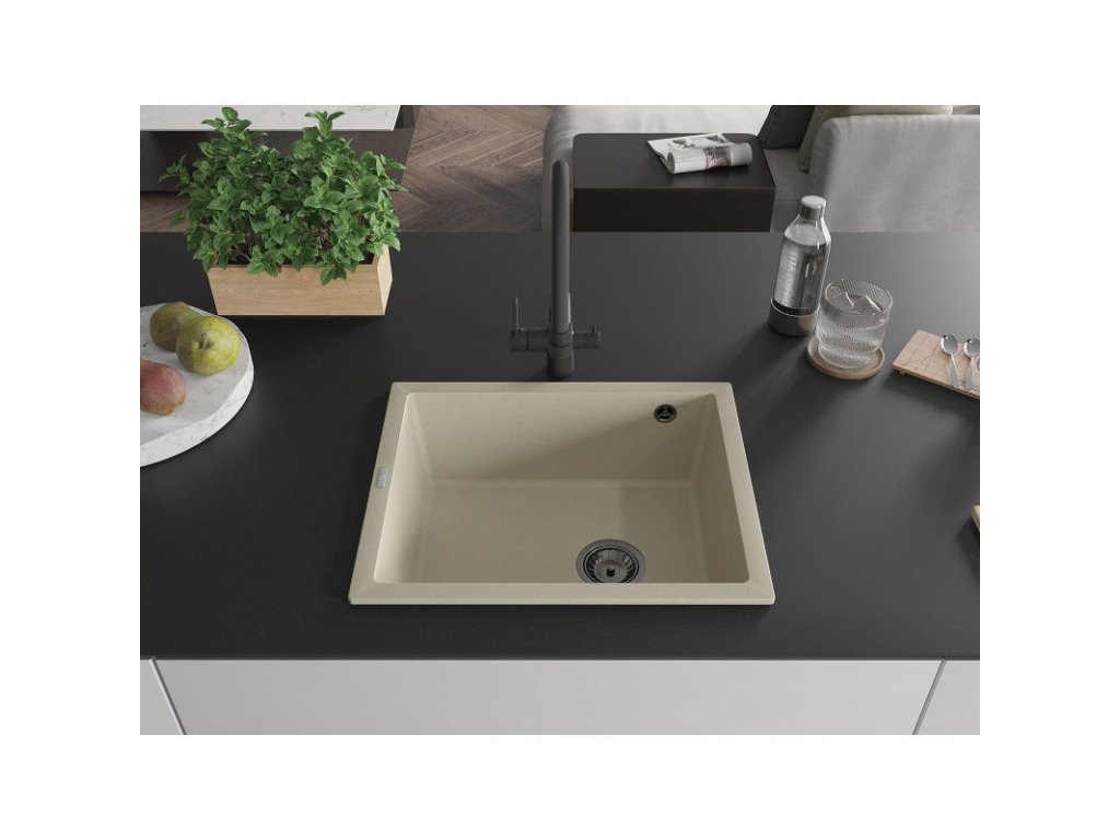Granitový drez Mexen Pedro s 1 misou 560 x 460 mm, béžový, čierny sifón - 6508561000-69-B