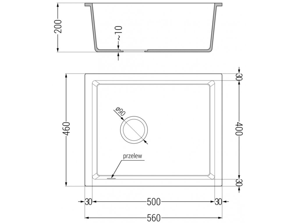 \nPriemer odtoku: ø90 mm