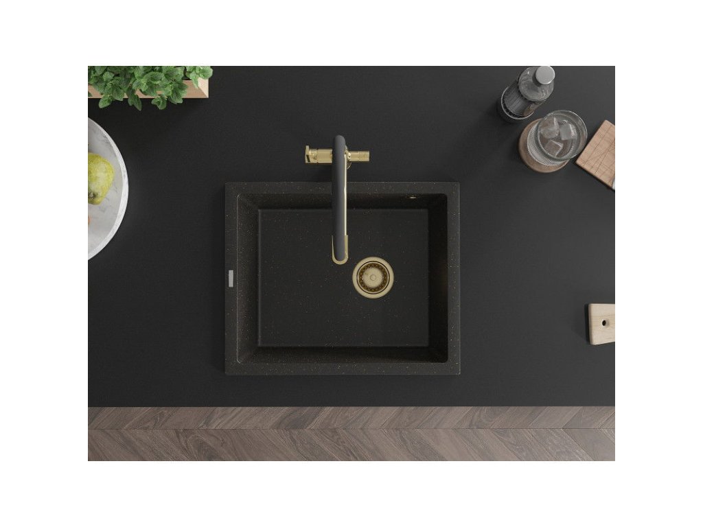 Granitový drez Mexen Pedro s 1 misou 560 x 460 mm, čierna/zlatá metalíza, zlatý sifón - 6508561000-75-G