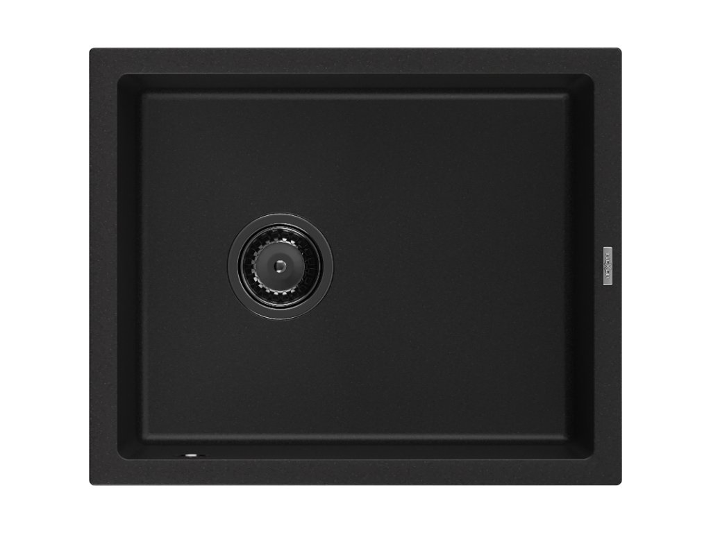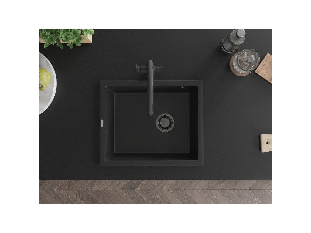 Granitový drez Mexen Pedro s 1 misou 560 x 460 mm, čierny, čierny sifón - 6508561000-77-B