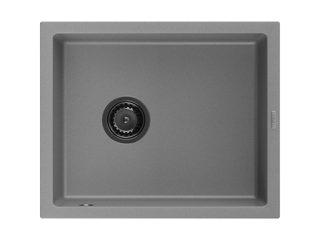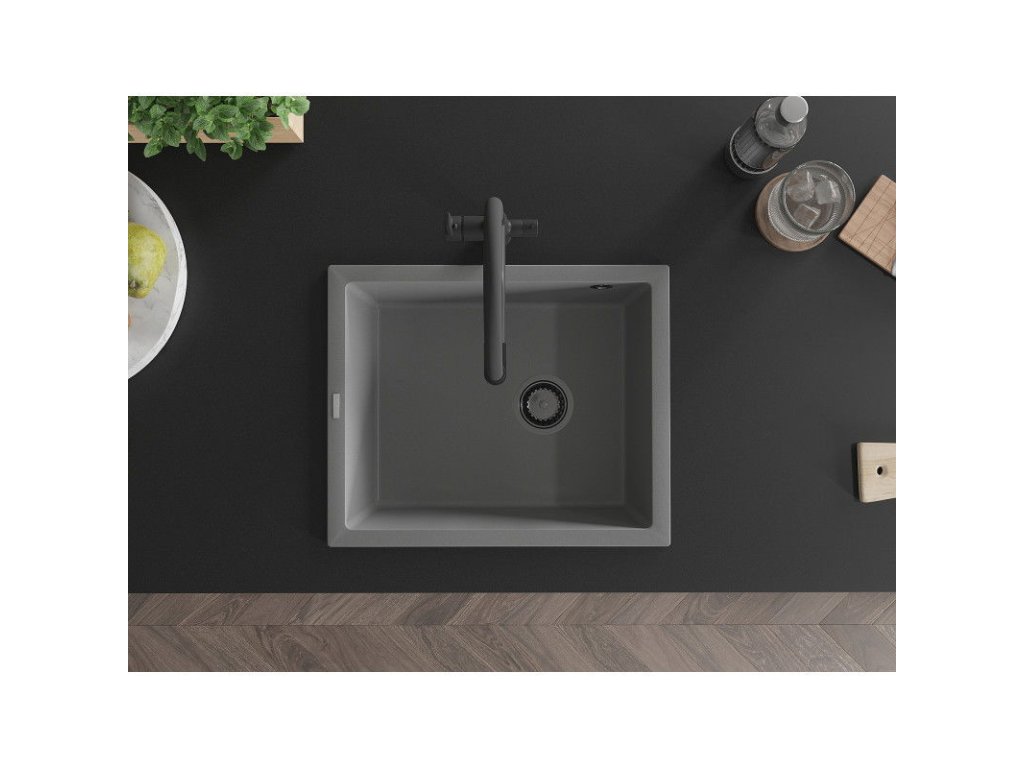 Granitový drez Mexen Pedro s 1 misou 560 x 460 mm, sivý, čierny sifón - 6508561000-71-B