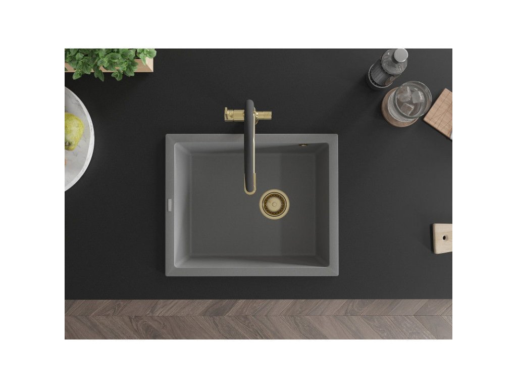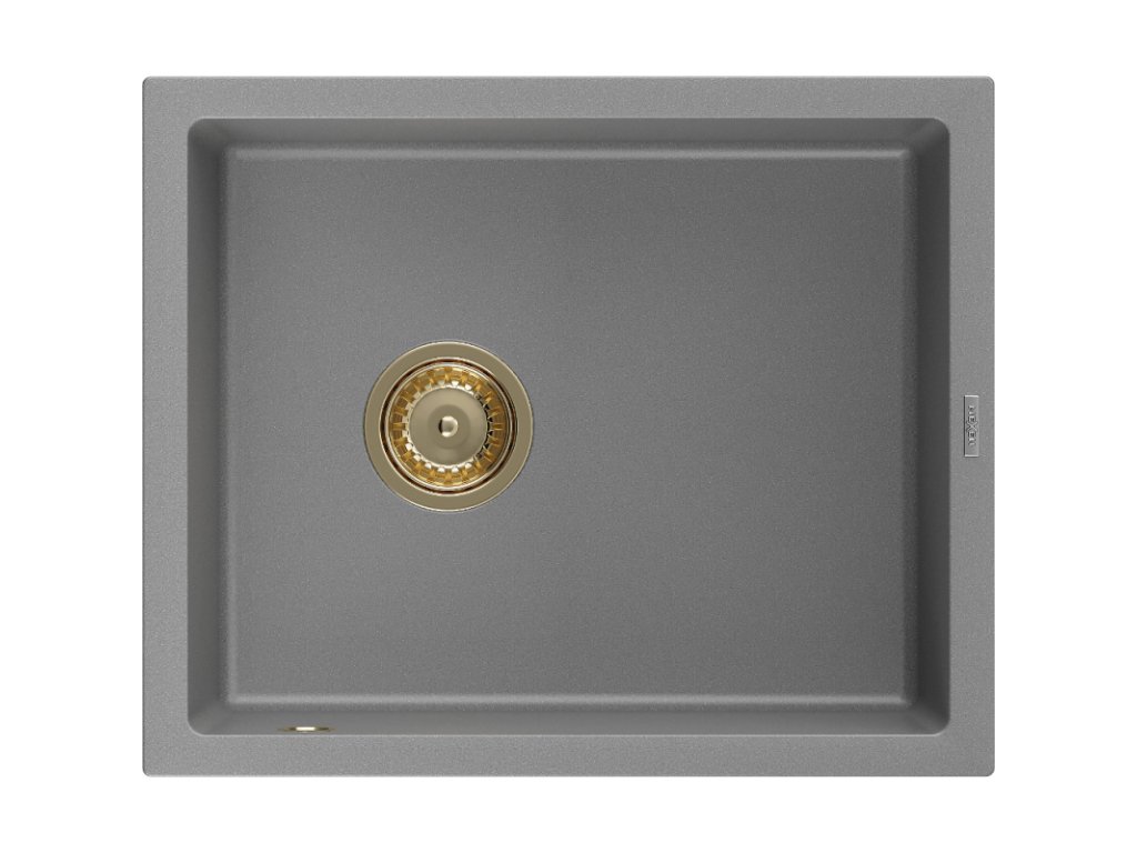 Granitový drez Mexen Pedro s 1 misou 560 x 460 mm, sivý, zlatý sifón - 6508561000-71-G