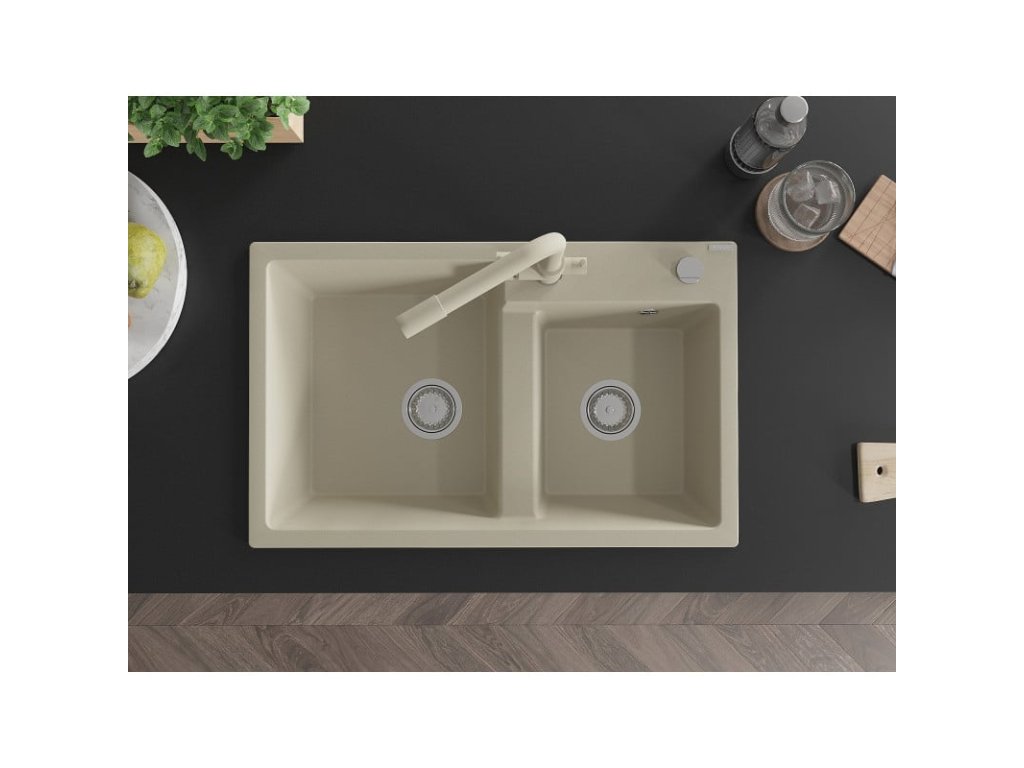 Granitový drez Mexen Tomas s 2 miskami a kuchynskou batériou Duero, béžový - 6516-69-671600-69