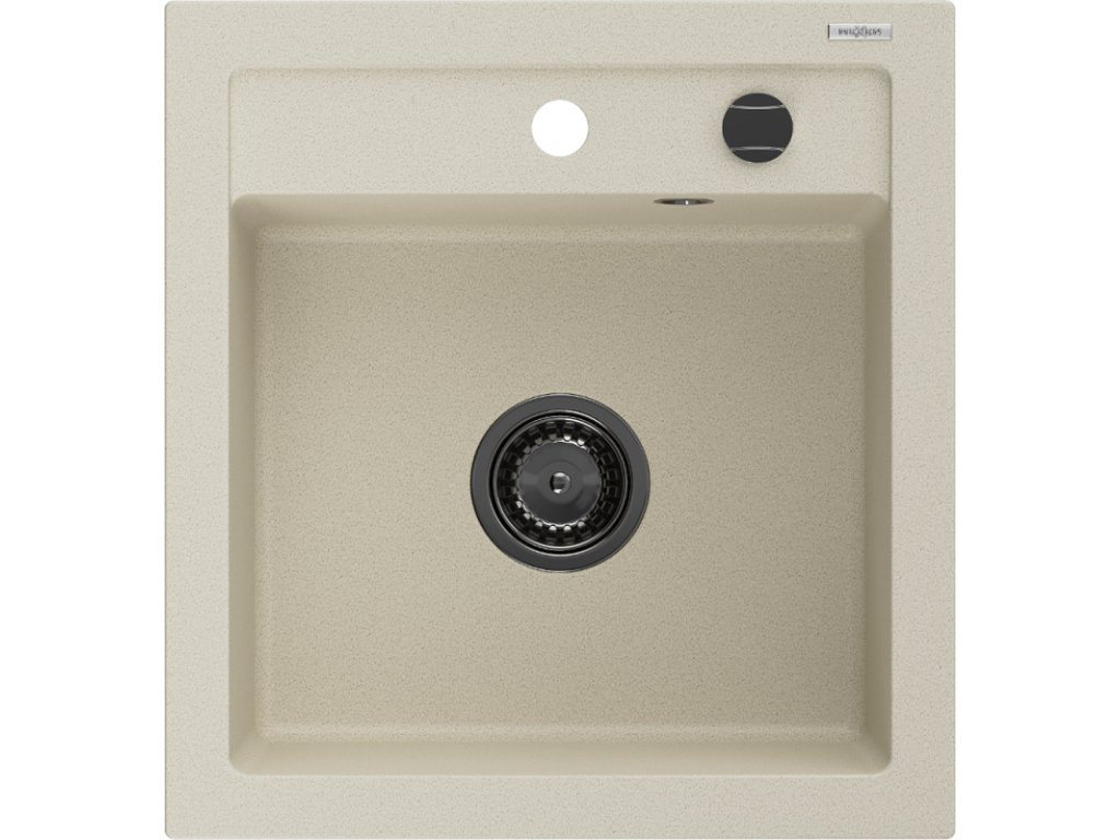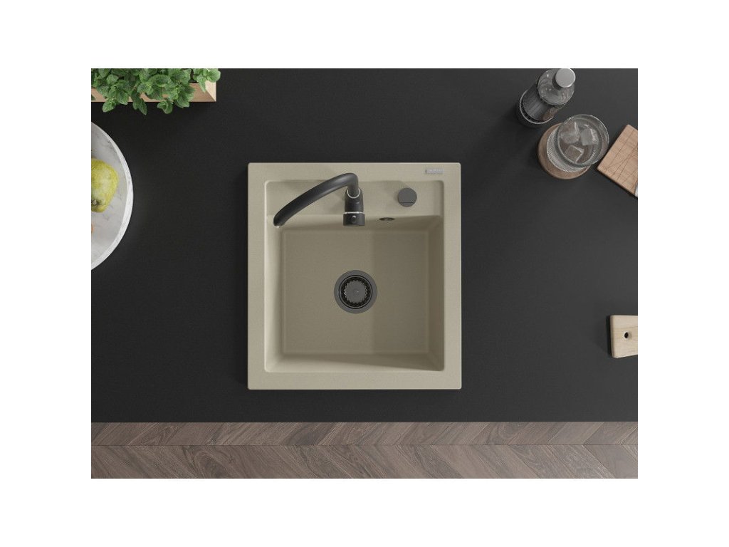 Granitový drez Mexen Vito s 1 misou, 520 x 490 mm, béžový, čierny sifón - 6503521000-69-B