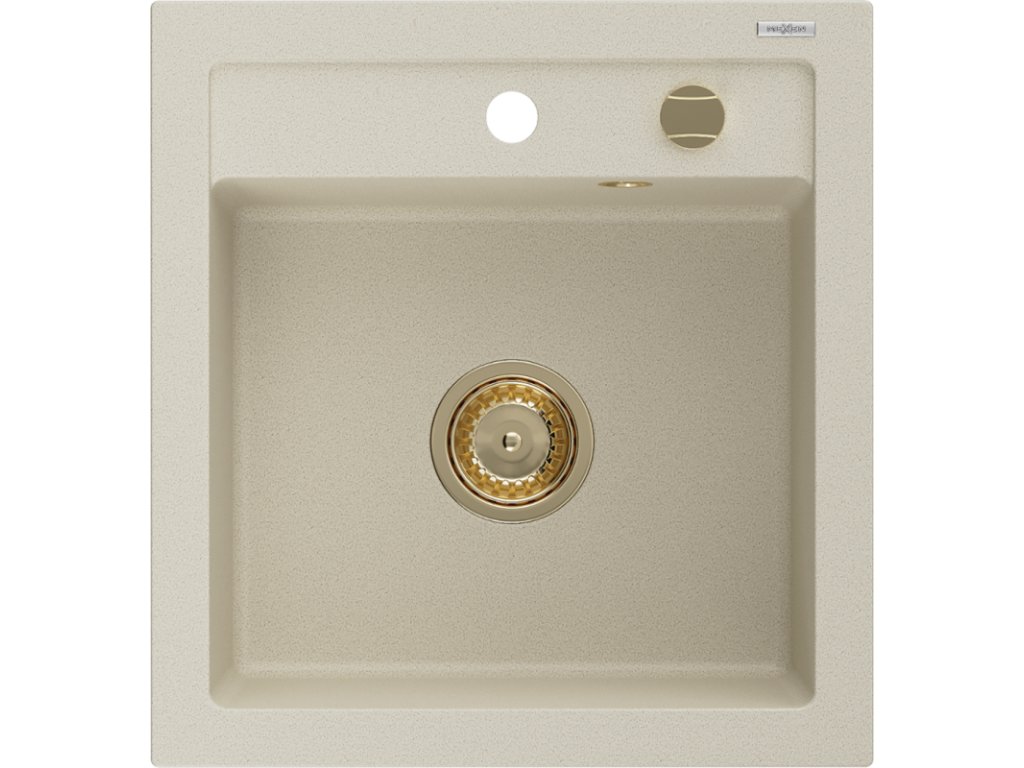 Granitový drez Mexen Vito s 1 misou, 520 x 490 mm, béžový, zlatý sifón - 6503521000-69-G