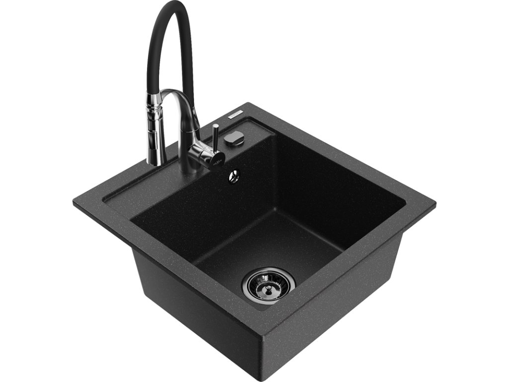 Granitový drez Mexen Vito s 1 misou a batériou Aster, čierna/strieborná metalíza - 6503-73-73450-07-B