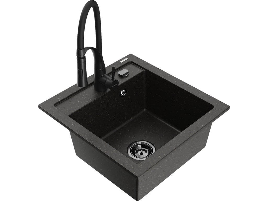 Granitový drez Mexen Vito s 1 misou a batériou Aster, čierna/zlatá metalíza - 6503-75-73450-70-B