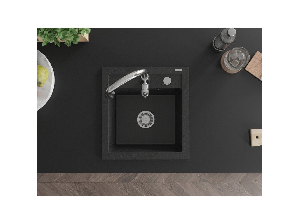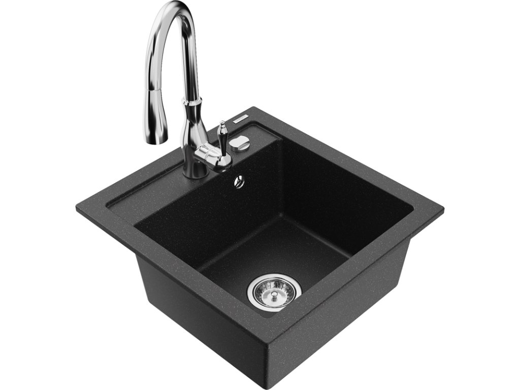 Granitový drez Mexen Vito s 1 misou a batériou Savita, čierna/strieborná metalíza - 6503-73-672601-00