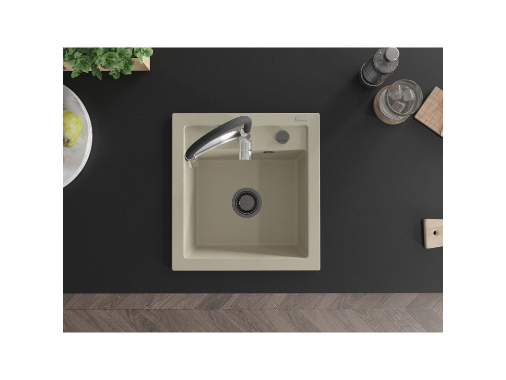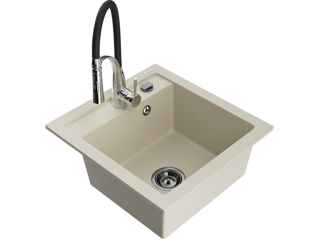 Granitový drez Mexen Vito s 1 misou a kuchynskou batériou Aster, béžový - 6503-69-73450-07-B