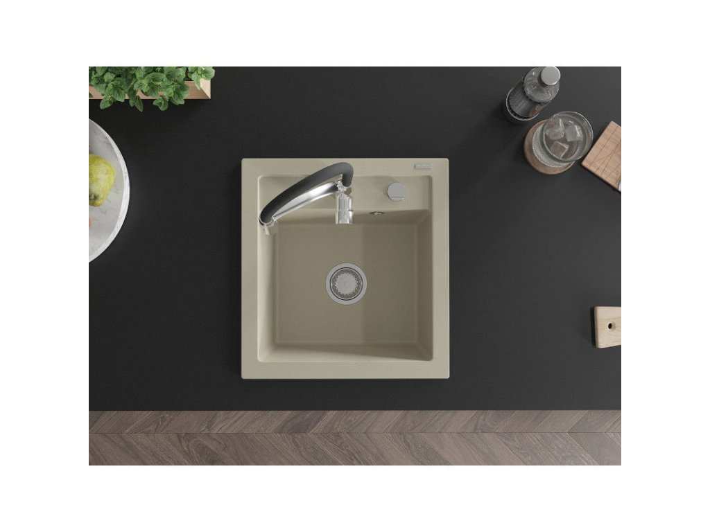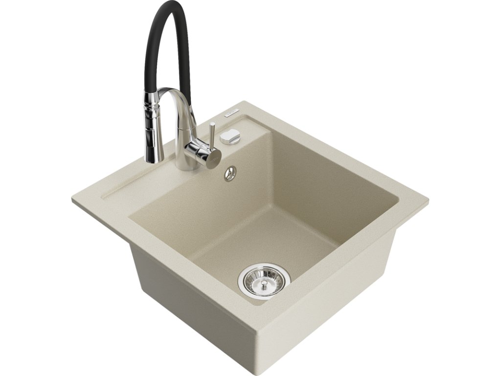 Granitový drez Mexen Vito s 1 misou a kuchynskou batériou Aster, béžový - 6503-69-73450-07